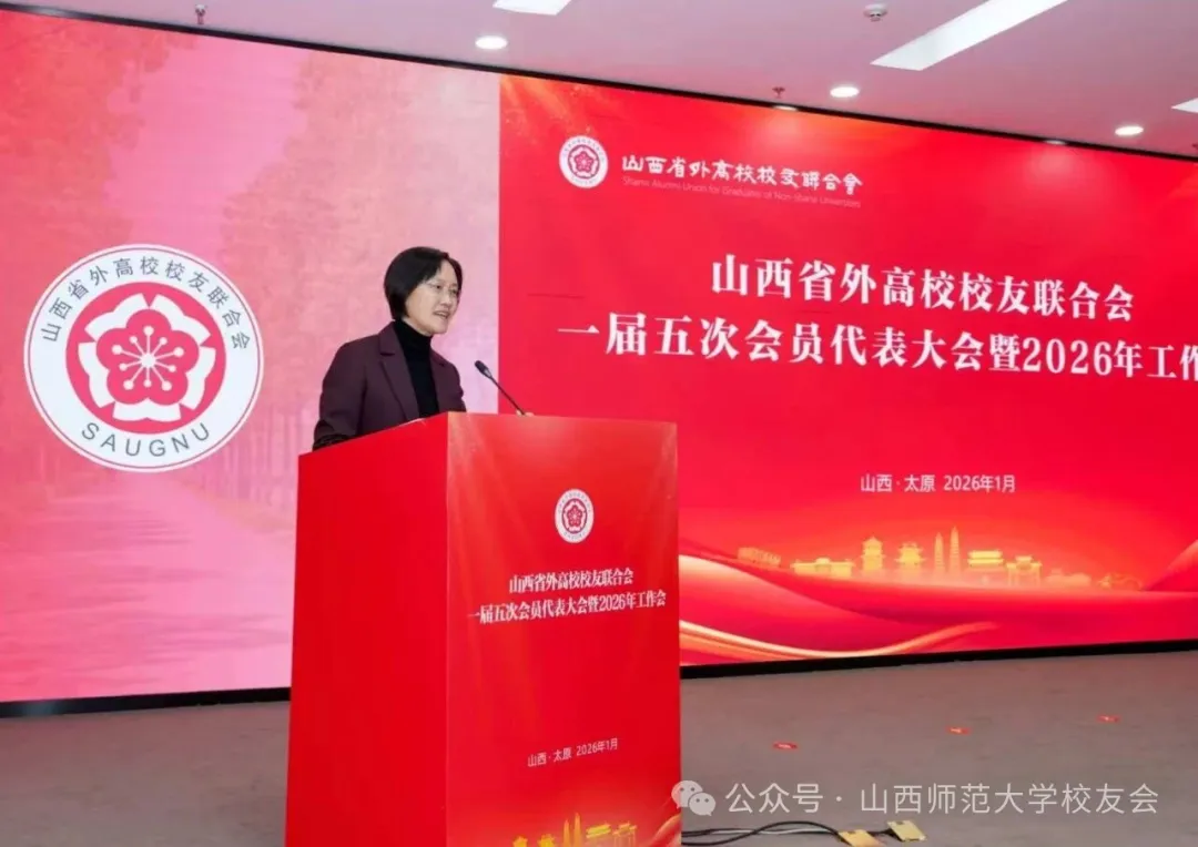 许小红在致辞中代表我校向大会的召开表示祝贺,对与会代表及广大校友,完成学业后主动回晋、服务山西经济建设的情怀表示赞赏。她希望大家继续把学习所得、成功经验与我省经济社会发展的实际需求紧密结合,为我省高质量发展贡献力量。她勉励大家做山西故事的讲述者、山西形象的传播者,吸引更多优秀人才来山西创业和投资。她期待山西省外高校校友联合会和省外各高校校友会继续支持我校校友工作,加强沟通联系,共同搭建校友交流平台,促进校友资源作用的发挥。